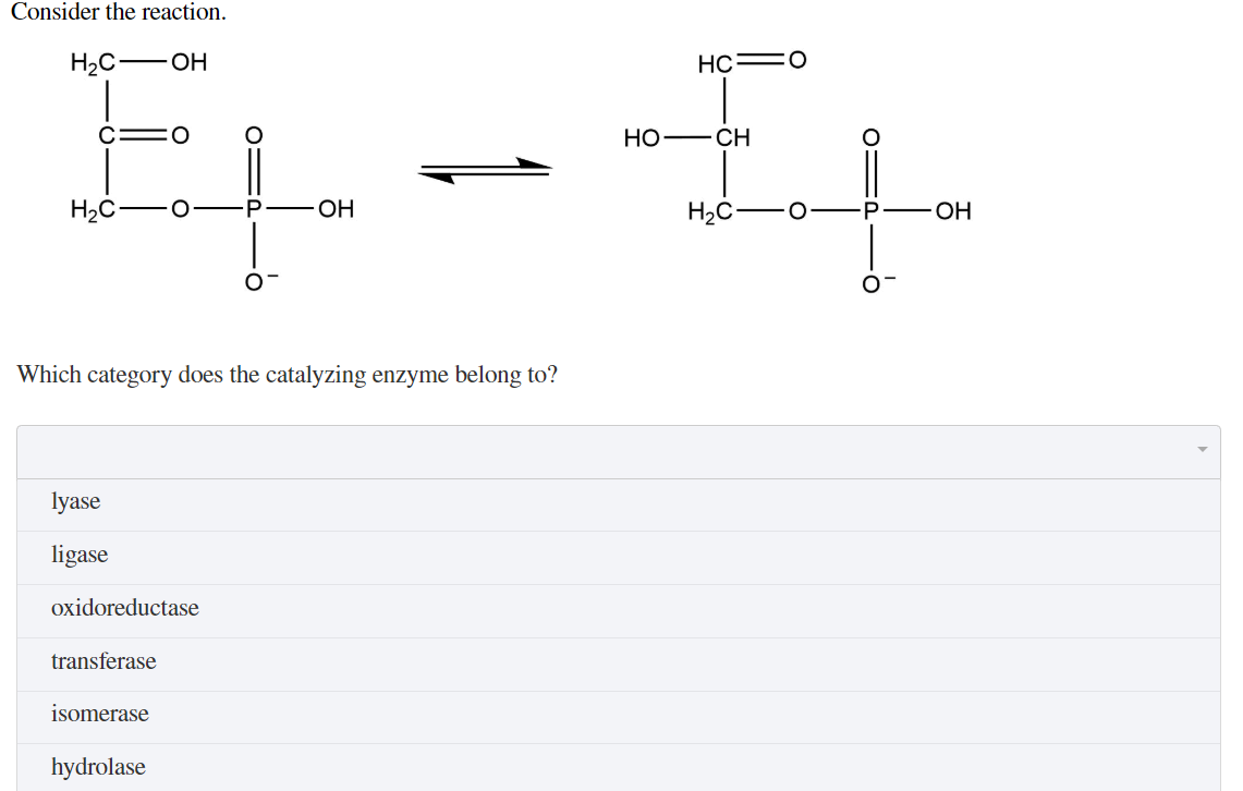 Protein molecule that adds a specific chemical action to reaction catalyzed by enzymes that cannot be achieved by the 20 naturally occuring amino acids. H2COH HC0 EL - IV c 0 0 HO CH 0 HC0P-OH HC-0-P-OH -6 Which category does the catalyzing enzyme belong to. Coenzymes are small molecules.
